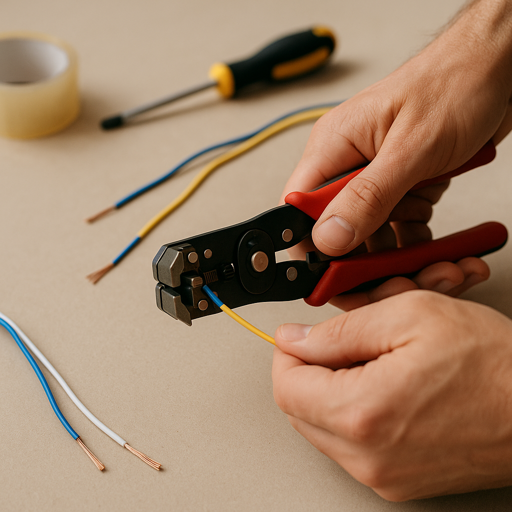 O alicate desencapador é essencial para quem deseja trabalhar com fios, tomadas, conectores e sistemas de iluminação com segurança. Ele possibilita a remoção eficiente do isolamento dos cabos sem danificar o cobre interno, o que facilita o processo de crimpagem. Essencial em tarefas de bricolagem e pequenas instalações, essa ferramenta traz praticidade e agilidade aos seus projetos DIY quando combinada com itens como fita adesiva transparente e conectores adequados.