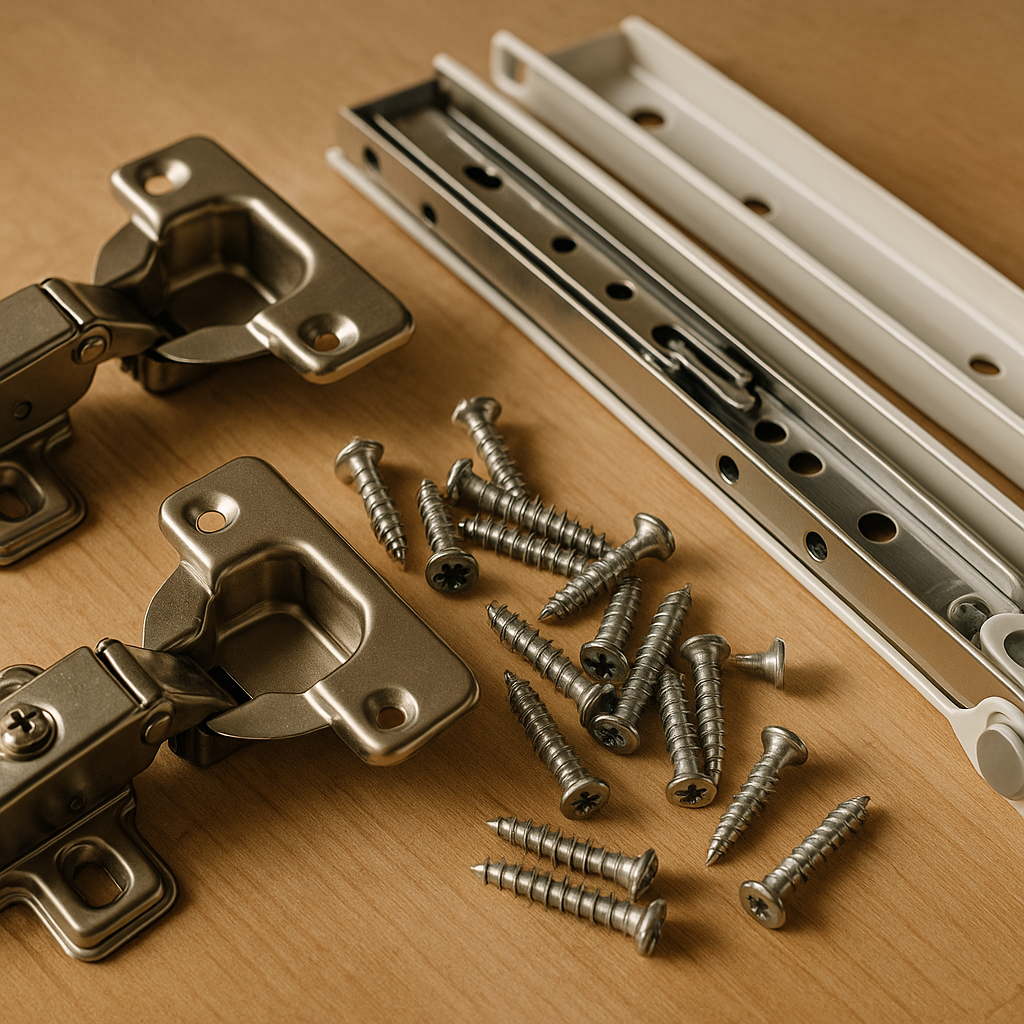 O kit de ferragens para móveis é composto por dobradiças, corrediças, parafusos e fechos que são essenciais no uso cotidiano. Na hora da escolha, é importante considerar parafusos e buchas para parede que sejam compatíveis com o tipo de material onde serão fixados. Além dessas ferragens fundamentais, componentes hidráulicos como torneiras, chuveiros e caixas d’água também precisam ser avaliados quando o projeto envolve integração entre marcenaria e instalações hidráulicas, garantindo funcionalidade e durabilidade.