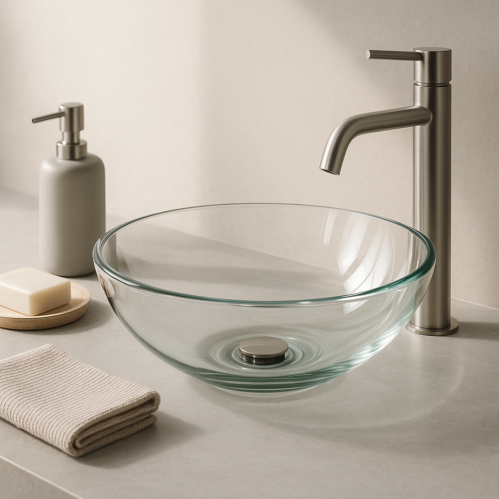 O kit lavabo cristal reúne torneira, cuba de vidro, espelho e acessórios especialmente pensados para transformar seu lavabo com elegância e praticidade. Este conjunto é ideal para quem busca um acabamento limpo e que exija facilidade na manutenção, valorizando cada centímetro do espaço e a iluminação natural ou artificial do ambiente. Se sua intenção é renovar o lavabo, este kit torna-se a peça-chave para alcançar um resultado sofisticado e funcional em seu espaço.
